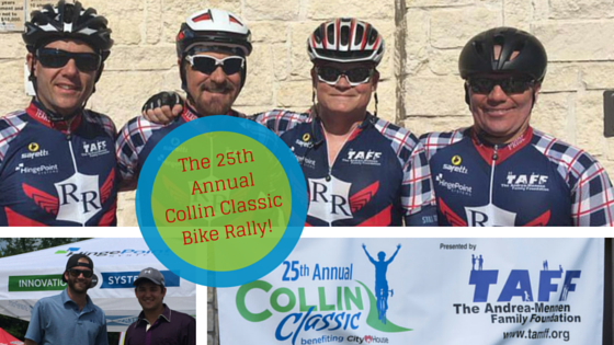 Rudy G. Andrea, the President/Treasurer of TAFF and a friend to the HingePoint team, introduced us to the Collin Classic Bike Rally fundraiser for City House, via his local biking club called the Rudy Ride. Rudy Andrea is raising the level of awareness throughout the cycling community about many worthy causes in the Metroplex. We are thankful to get involved in a worthy cause and proud to cycle weekly with Rudy and his pals.